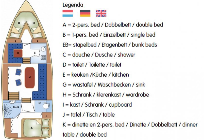 When you step inside the Tinka, her beautiful interior immediately catches the eye, a nice-sized saloon, kitchen with adjacent dinette for breakfast, a V-bed in the forward bedroom and separate cells for the shower and toilet. These are right in front of the spacious rear bedroom, which is equipped with a dressing table.
