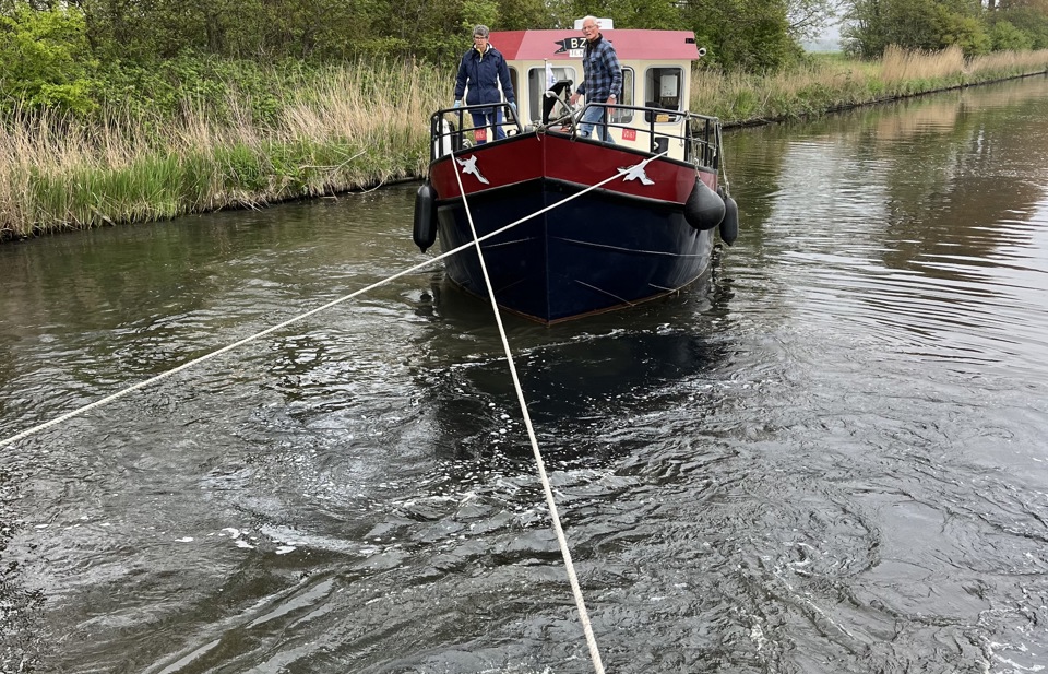 Het echte vertrek vanuit Langelille was 18-04-2025 om 16.30 uur. We zijn op pad gegaan naar Langweer voor onze eerste overnachting. Siebe heeft geen moeite om zijn taak als schipper meteen op te pakken, ik heb nog even wat moeite om over de gangboorden te lopen, om te gaan met de trossen, fenders e.d. Na een redelijke nacht de volgende dag door gevaren naar Sneek. Sneek is voor ons bekend terrein en hier blijven we 2 nachten. Hier hebben we de tijd om alles wat we meegenomen hebben een plekje te geven. Ook hebben we hier proviand ingekocht en is de koelkast gevuld. Van Sneek zijn we 21-04 naar Stavoren gevaren naar ‘het vrouwtje van Stavoren’! We hadden een groter beeld verwacht maar het bleek maar een klein vrouwtje. Omdat de claxon er mee op hield is Joren, monteur van De Driesprong, deze komen vervangen. Heel fijn!