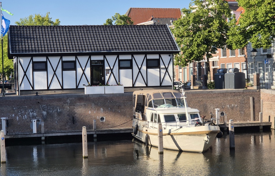 Na Dordrecht op pad richting Schoonhoven, de zilverstad. We varen vandaag de gehele dag in de regen over de Lek, beetje saaie vaarroute. In de passantenhaven van Schoonhoven staat de havenmeester ons al op te wachten in de stromende regen. Heel fijn dat hij ons even een handje helpt met aanleggen.