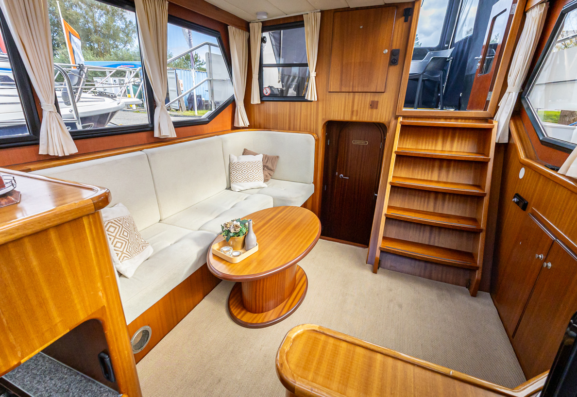 Ook in het voor- en najaar is het goed vertoeven op dit compacte jacht, omdat ze is voorzien van een tent over het gehele achterdek.