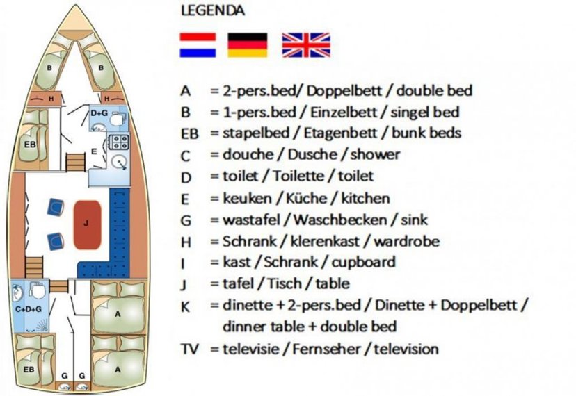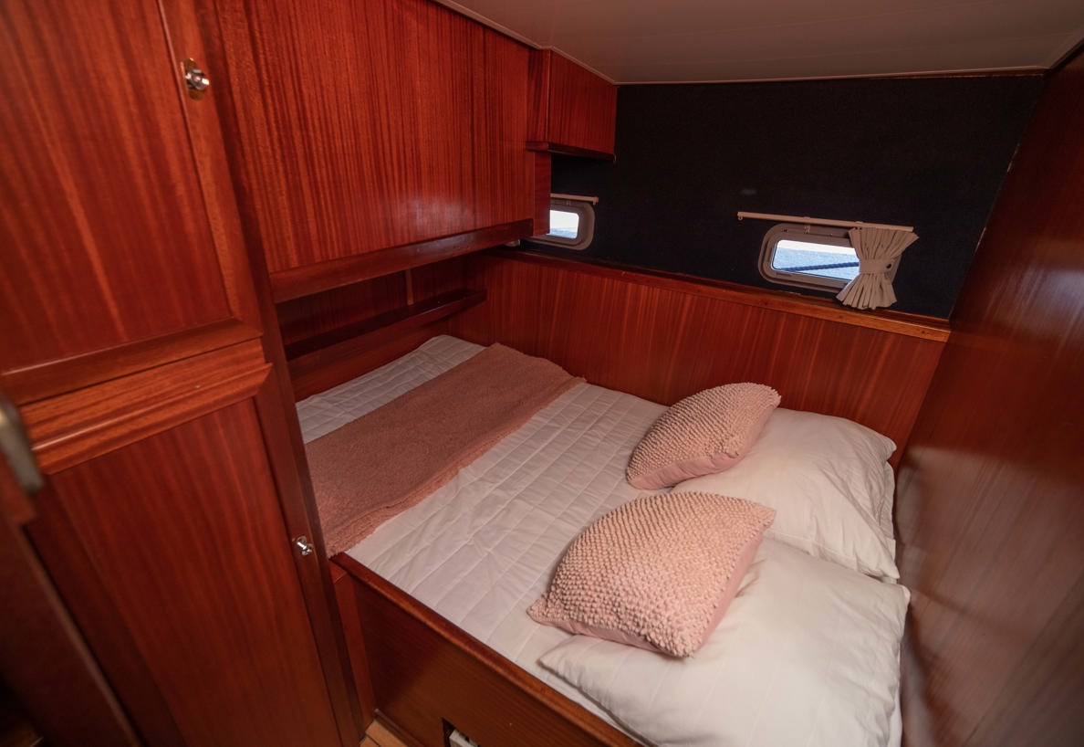 Met een grote groep het water op? De Tjonger is ideaal ingedeeld om met 10 personen comfortabel te gaan varen. De Tjonger heeft 5 losse slaapkamers, 2 zijn uitgerust met een 2 persoons bed, 1 is uitgerust met een V-bed en de overige 2 kamers zijn voorzien van stapelbedden. Uitgevoerd met een boeg- en hekschroef en een sterke John Deere scheepsdiesel valt de Tjonger goed te maneuvreren. De Tjonger is de enige 10- persoons Aquacraft 1400 met 5 separate slaapkamers, hierin verschilt ze dus ook van haar zusterschip de Kuinder.